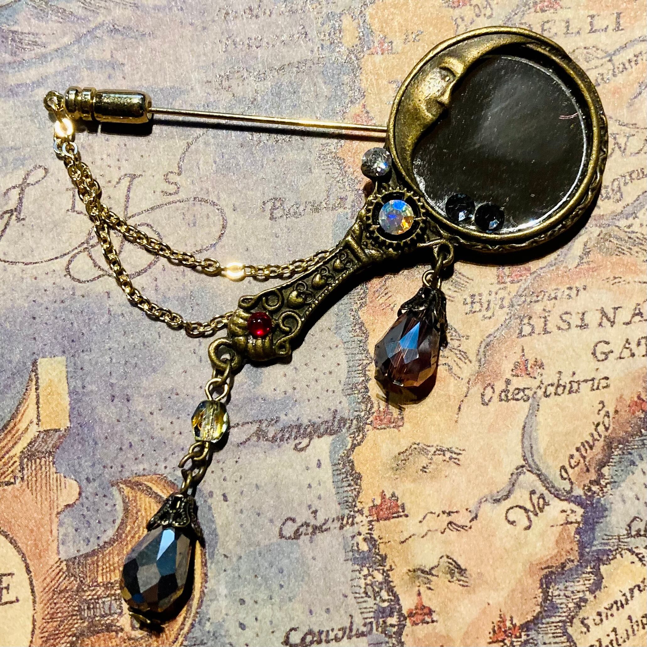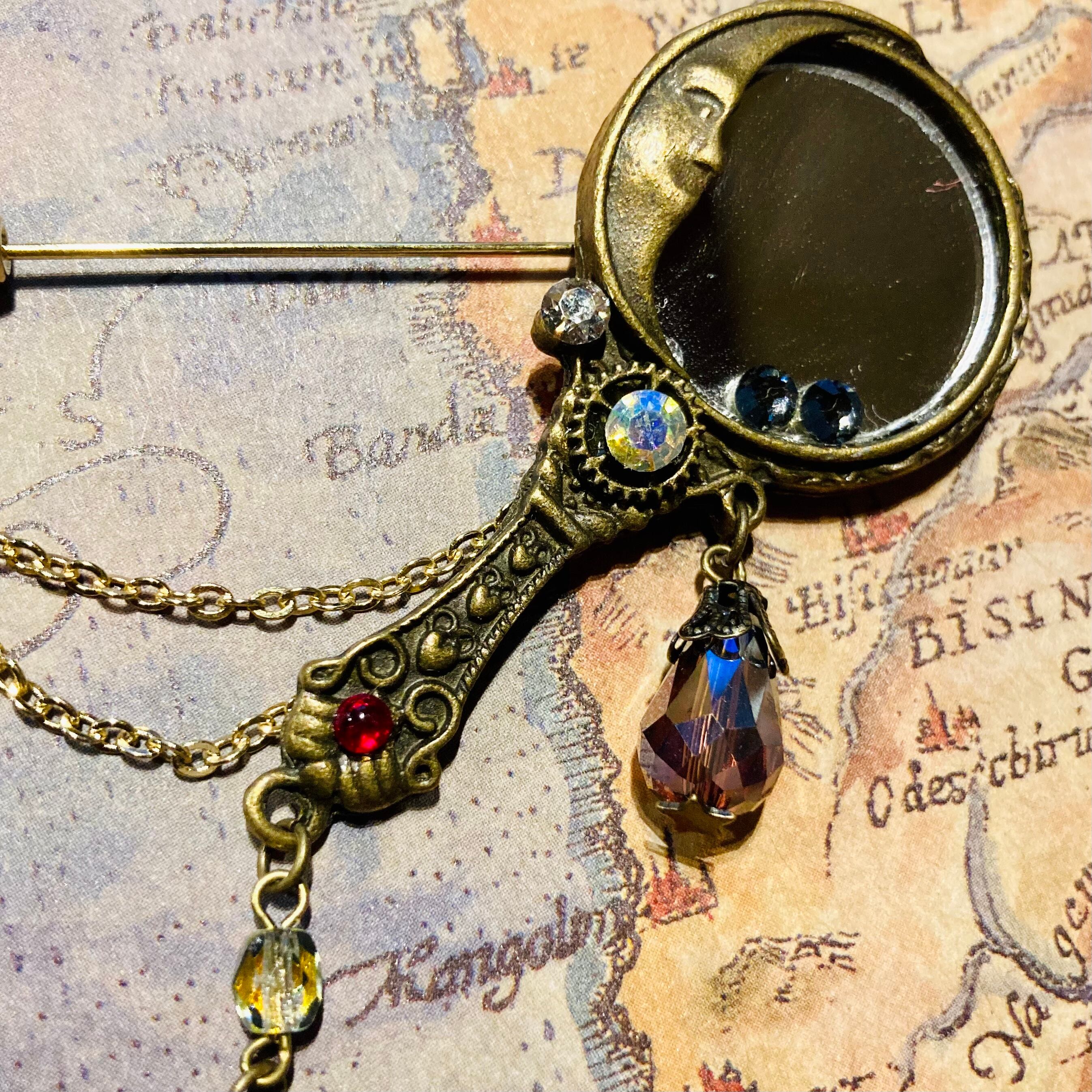 手鏡モチーフのパーツをハットピンに仕上げました。